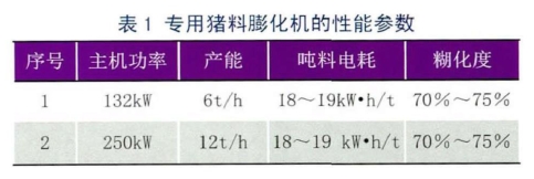豬料的熟化程度達到70%~75%對于膨化機是一個不高的要求,但是對于膨脹器實現這個目標就比較困難。而對于專用豬料膨化機應用的難點在于產能的提升和噸料電耗的降低。只有噸料電耗進一步降低到和膨脹設備同一個水平上,同時物料的熟化程度又向膨化設備看齊,這樣生產的綜合費用才會降低,該工藝才能具有良好的商業價值。