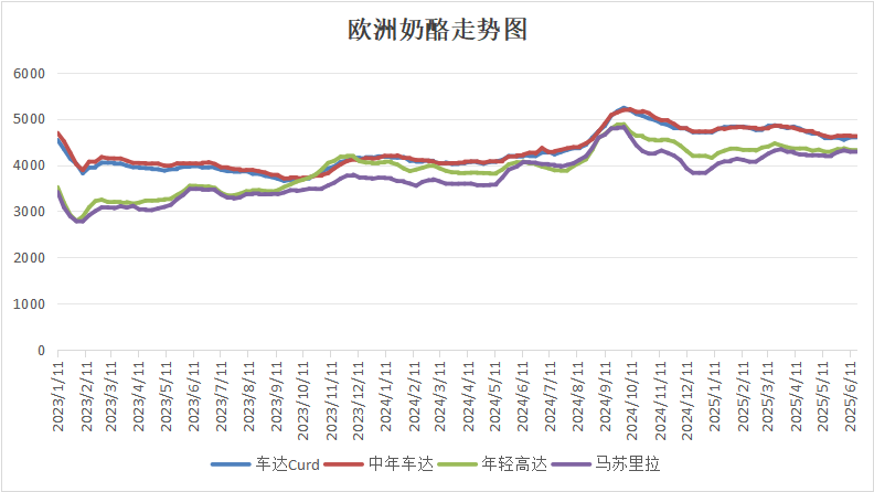 歐洲奶酪總體走弱,下半年奶酪產季即將到來,各品種供應料增。