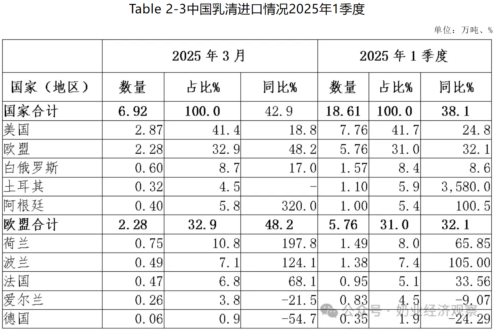 2025年1-3月國內乳清類產品進口量同比增38%