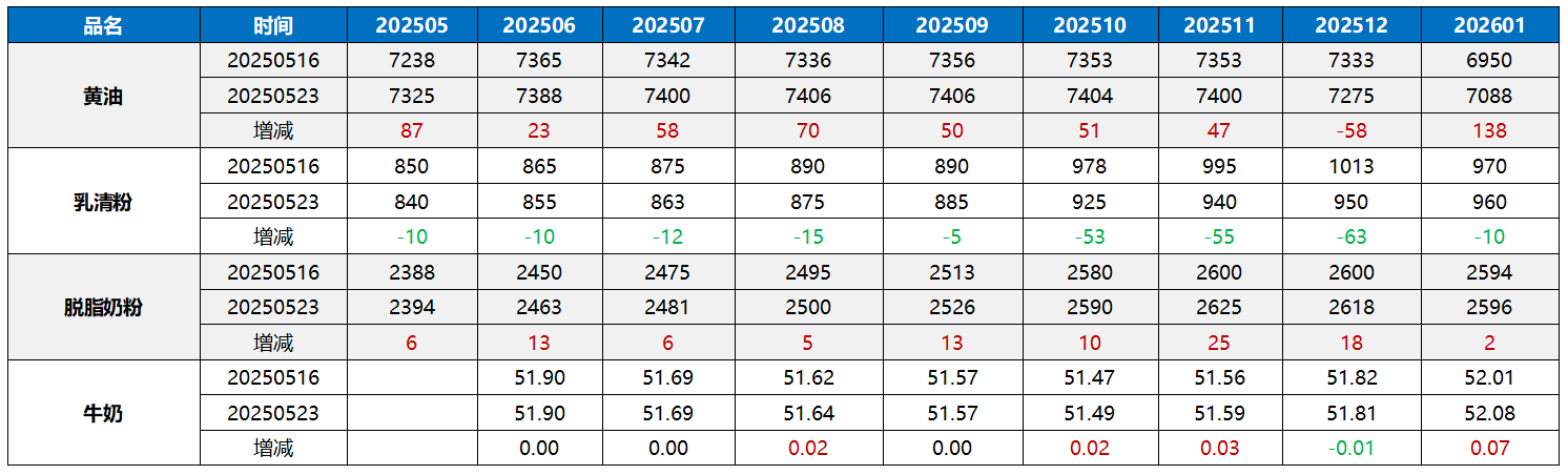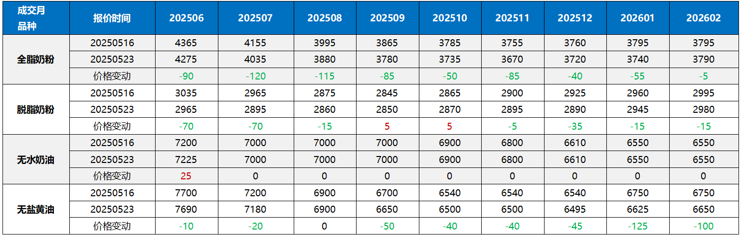 受拍賣影響,除無水奶油外的各品種回調明顯。