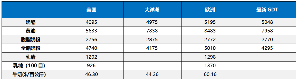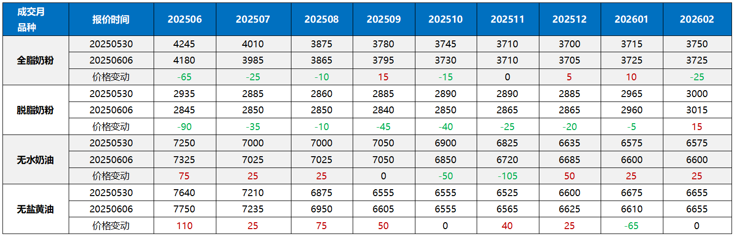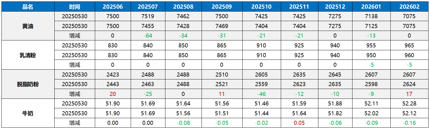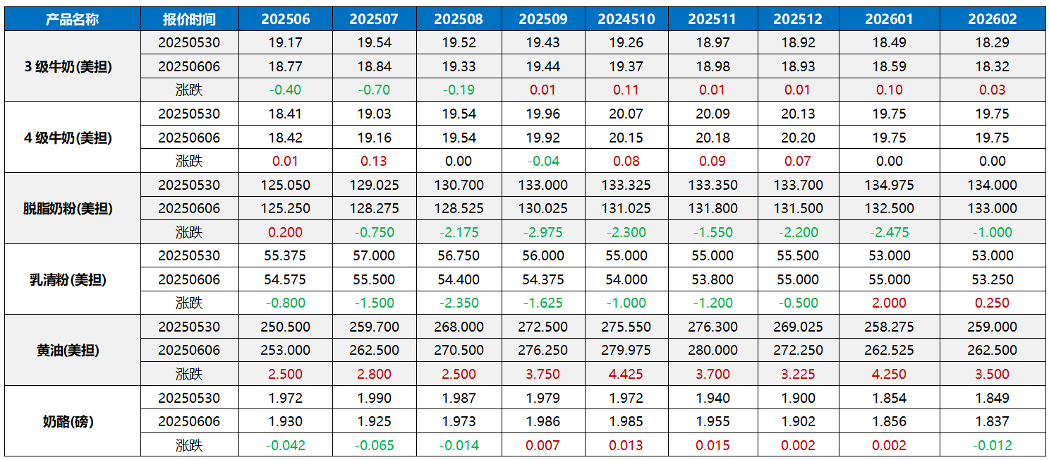 歐洲黃油回調,脫脂奶粉反彈。