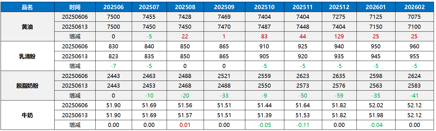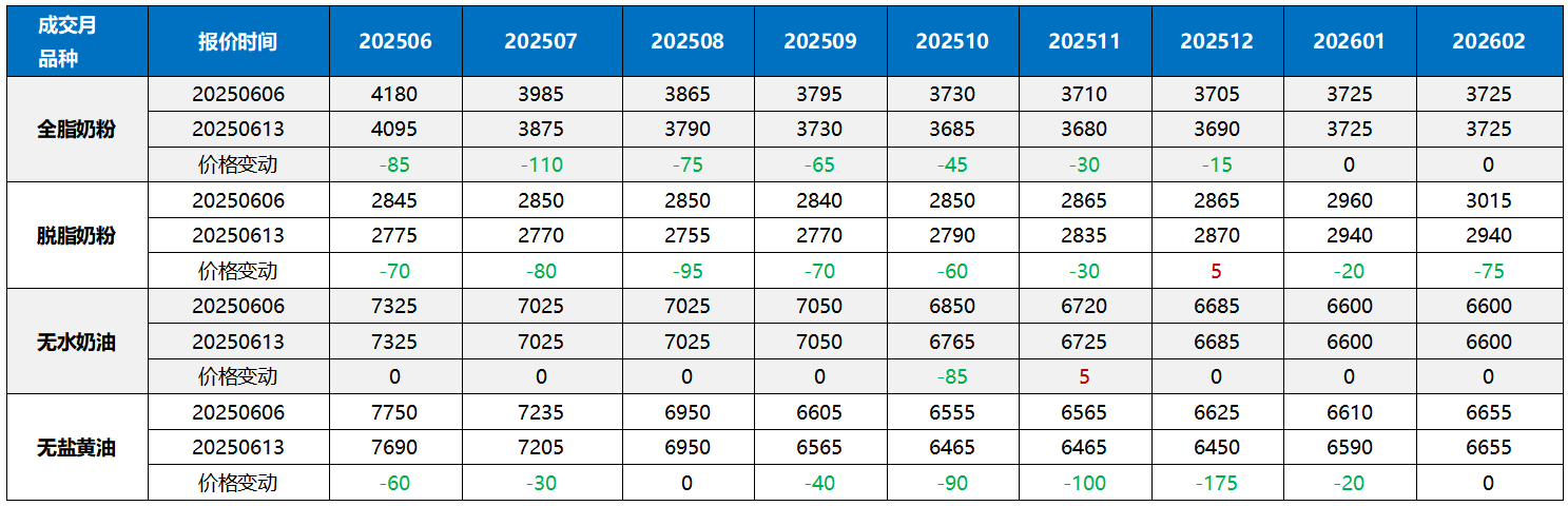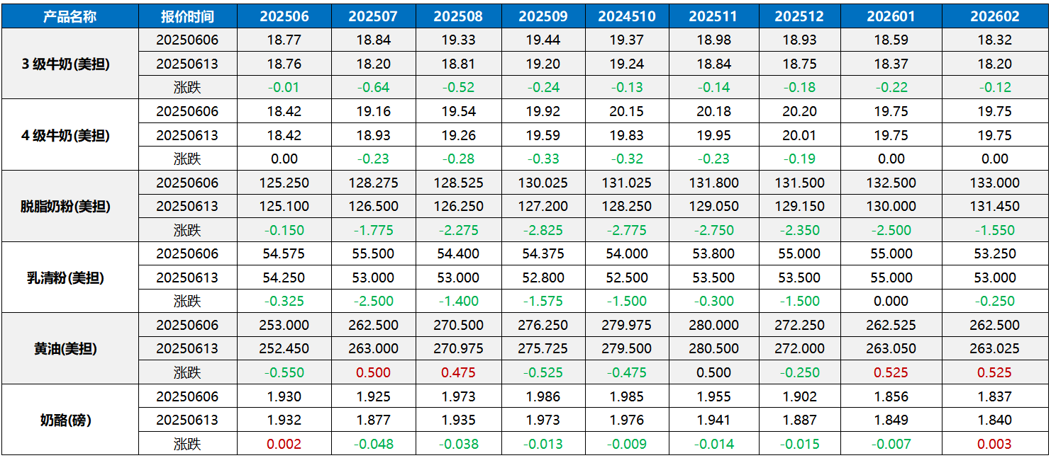 新西蘭乳品連續下調,除無水奶油略有抵抗外,奶粉跌勢兇猛。