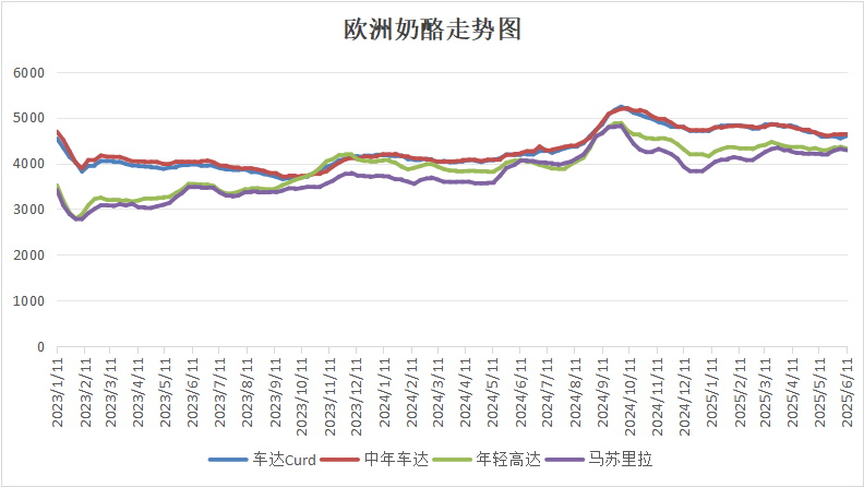 歐洲上半年產季接近結束,然而乳脂表現異常堅挺,考慮到目前漫長的訂貨周期,可以認為下半年歐洲發酵黃油難有像樣回調,訂貨宜早;脫脂一如既往弱勢。