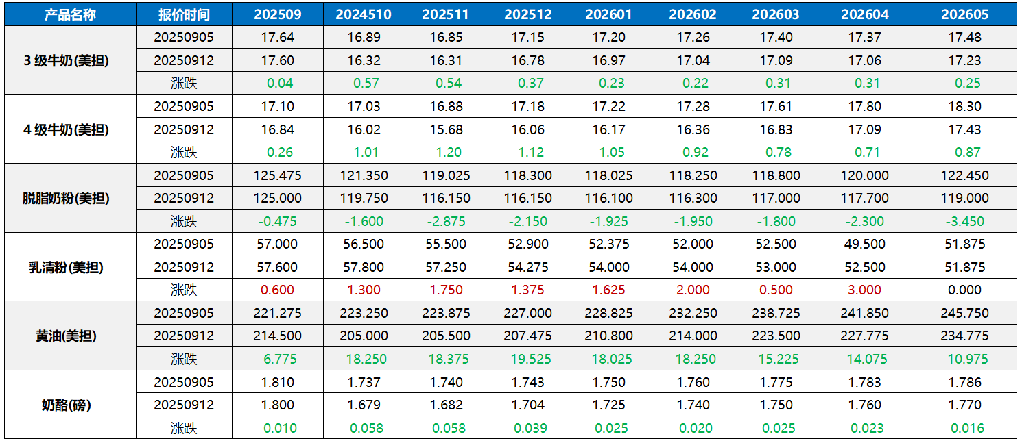 產量增加和低價進口品的沖擊使得歐洲乳品連續下行。