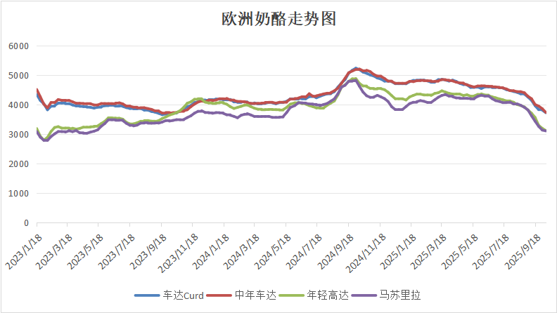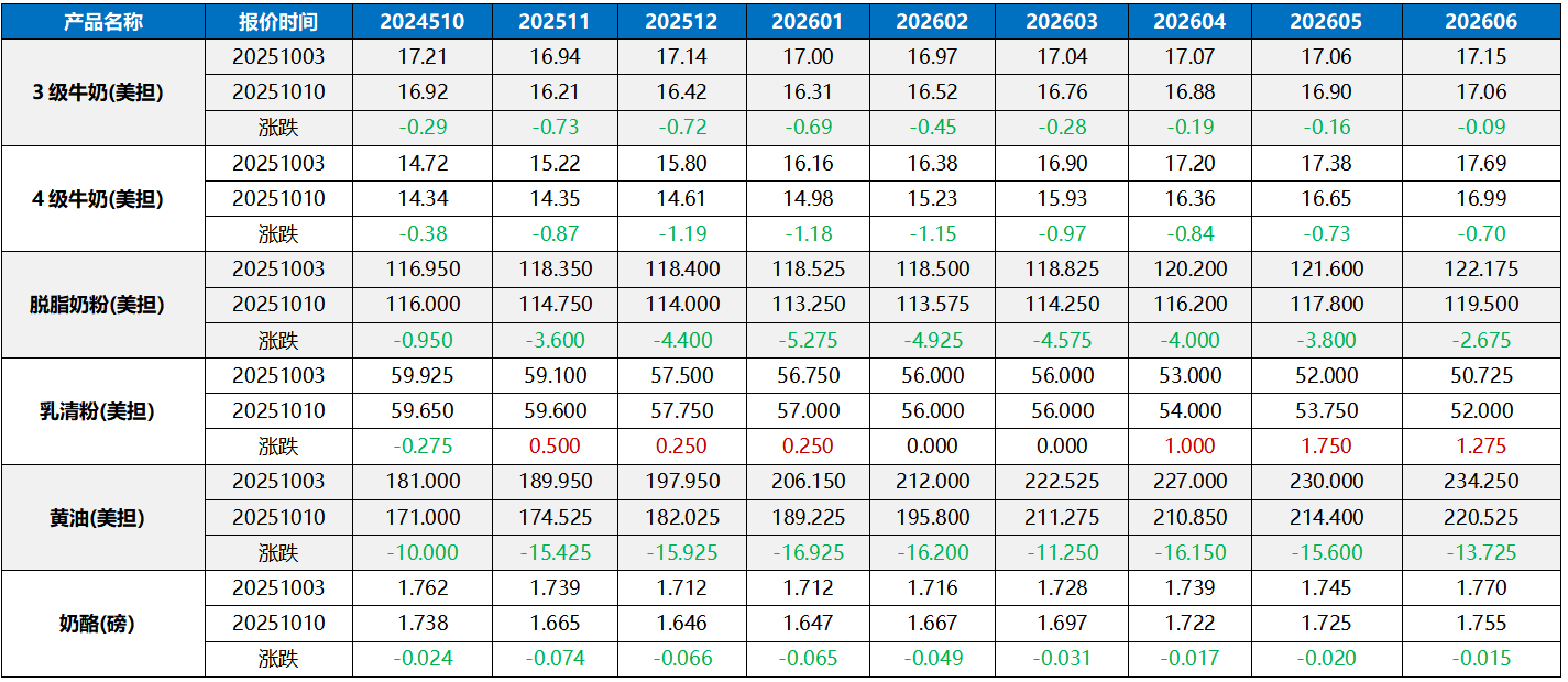 和美國乳品近期聯動密切的歐盟產區也未能幸免,再次下行。
