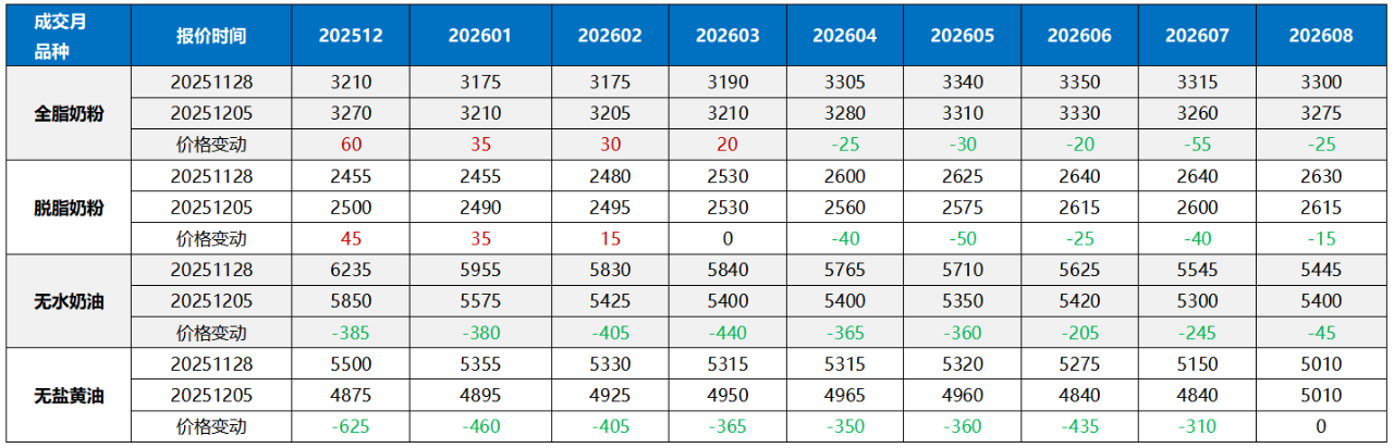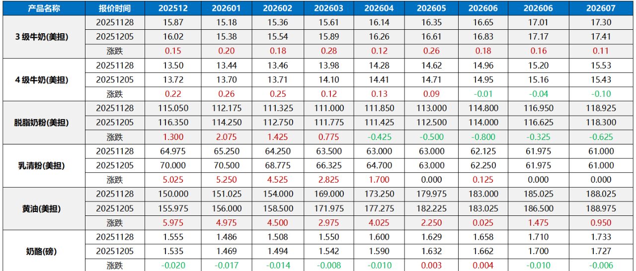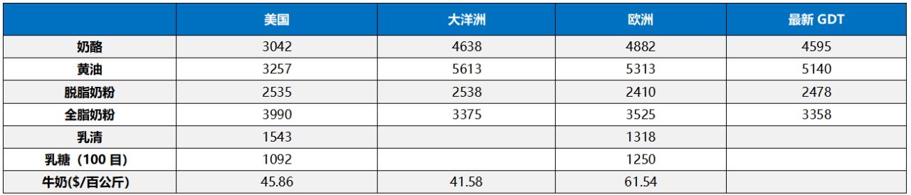 受GDT393影響,奶粉止跌回穩,乳脂暴跌。