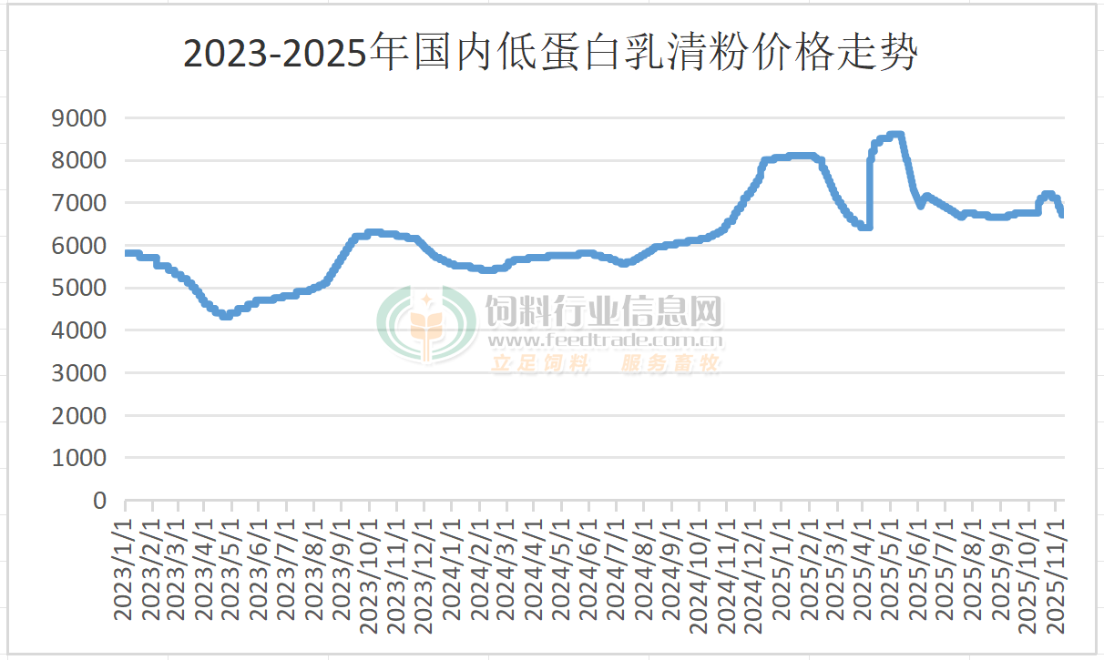 港口乳清粉到貨量好轉,國內生豬養殖依然處于虧損區,能繁母豬存欄量下降且仔豬持續虧損,仔豬存欄數量趨降,需求面疲弱,市場購銷偏淡,穩中偏弱運行,本周部分地區低蛋白乳清粉報價6450-6700元/噸,后續需注意港口到貨量等因素。