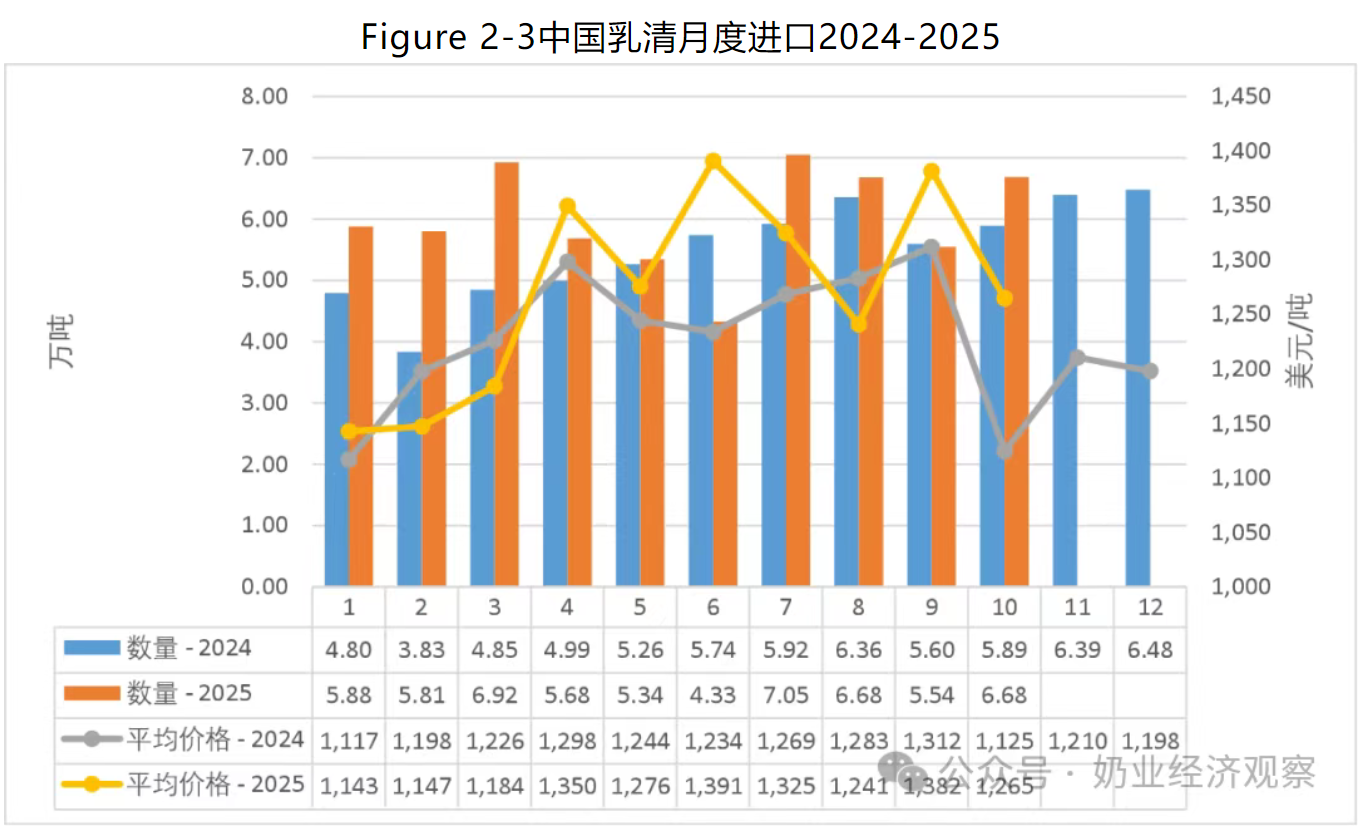 2025年1-10月國內乳清類產品進口量同比增15.5%