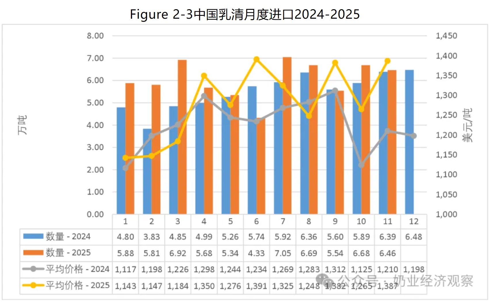 2025年1-11月國內乳清類產品進口量同比增11.3%