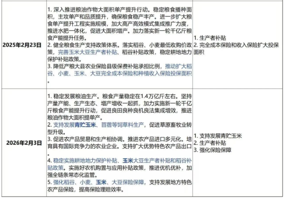 ● 優政策:穩定玉米大豆生產者補貼,農業保險轉向強化保障、提高理賠效率。