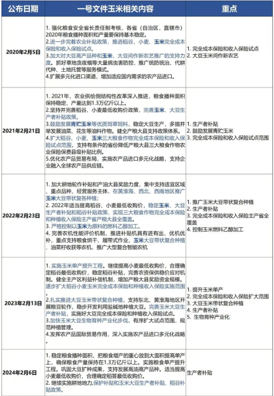 一、回顧歷年一號文件中玉米相關內容