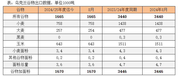 本年度迄今出口小麥75.8萬噸,低于去年同期的143.8萬噸;出口玉米64.3萬噸,去年同期151.1萬噸;出口大麥25.7萬噸,去年同期47.7萬噸。