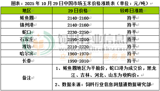 國內主產區上市節奏差異呈現顯著分化態勢,東北產地新糧持續上量企業收購價小幅下調,華北產地上量萎縮企業到貨偏緊報價止跌反彈。北方港口晨間集港量維持在2萬噸以上,汽運到貨多為遼寧糧源,鐵運到貨為黑龍江糧源。集港量隨基層季節性上量增多,貿易商收購價格小幅下壓。南方港口飼料企業采購積極性弱,仍以按需采購為主,下游提貨相對積極,遠期報價偏低。國內玉米現貨價格基本穩定,局部小幅波動。東北產氣溫同比偏低利于新糧存儲,部分種植戶低價惜售,售糧積極性相對一般,而隨著新糧收割已過九成,基層糧源陸續上量,種植戶售糧意愿提升,烘干糧也開始陸續上市,直屬庫陸續開收,貿易商也展開建庫活動,深加工企業根據上量情況調整收購價格。華北黃淮產區新糧收割接近尾聲,隨著天氣轉晴部分基層種植戶售糧積極性下降,但潮糧消化尚未完成,市場供應以濕糧為主,主要流向深加工企業,東北糧也流入市場,干糧、優質糧供應相對有限,深加工企業開始上調報價,企業對低質糧仍有壓價動作。本地新玉米質量下降,飼企需要篩選糧源,增加收購成本,部分飼企增加采購東北玉米。