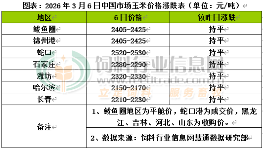國內雨雪天氣影響減弱,持糧主體出貨節奏略有加快,但市場整體供應低位運行,加工企業剛需補庫,支撐價格延續漲勢,但上行空間逐步收窄。東北產地貿易商逢高出貨,北方港口集港量較節前逐步增多,裝船需求密集,貿易商收購價維持高位,未來一周北港裝船貨量約144萬噸。南方港口庫存同比偏低,飼養利潤虧損,替代谷物優勢顯現,部分飼料企業開始增加谷物采購量。后續進口谷物還將陸續到貨,進一步補充市場供給,或對內貿玉米需求有所壓制。國內玉米現貨價格基本穩定,局部繼續偏強。東北產區基層余糧逐步減少,農戶惜售情緒偏強,基層上量情況一般,春節后進入養殖需求淡季,飼料企業采購極為謹慎,高價成交活躍度仍不足,深加工企業已恢復正常生產,玉米庫存再度縮減,為保障日常加工及庫存儲備,部分加工企業收購價延續上漲態勢。華北黃淮產區基層玉米持續減少,貿易庫存逐步增加,貿易商看漲心理趨強。經歷一輪雨雪天氣過后,種植戶及部分貿易商開始恢復售糧活動,基層上量略有恢復,加工企業廠門到貨量增多,但仍處于較低水平,部分加工存在補庫采購需求,繼續提價收購。