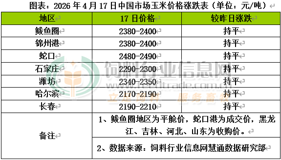 國內主產區潮糧上量進入尾聲,企業采購重心開始轉移到干糧,在收購高成本的支撐下,貿易商低價出貨積極性不高,玉米流通逐步減量,下游需求疲軟且整體盈利不佳,用糧企業采購謹慎,壓制著玉米漲價空間。北方港口晨間集港量繼續增加,港口庫存緩慢增加,終端企業補庫意愿不暢,收購企業主要以大型貿易商為主,質量要求趨嚴。南方港口終端消費增加緩慢,出貨量受天氣影響下降,市場成交量不足,貿易商銷售相對謹慎。國內玉米現貨價格基本穩定,局部小幅盤整。東北產區基層余糧銷售接近尾聲,糧源已經轉移到貿易環節,貿易商低價惜售情緒增強,維持少量出貨,部分飼養企業建庫到5月期間,多數加工企業收購積極性一般,價格偏穩運行,波動相對有限。全國種植意向調查顯示,今年糧食意向播種面積總體穩定,其中,稻谷面積基本持平,玉米面積穩中有增。華北黃淮產區基層余糧已逐步轉移至貿易商手中,貿易糧收購成本偏高,貿易商出貨利潤偏低,觀望氛圍偏濃厚,市場上量明顯減少,深加工企業廠門到貨量低于前期水平,貿易商及加工企業采購謹慎,收購價格主流穩定,局部窄幅波動。