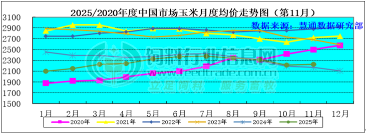 圖表:2025年11月中國玉米月度價格走勢圖(單位:元/噸)