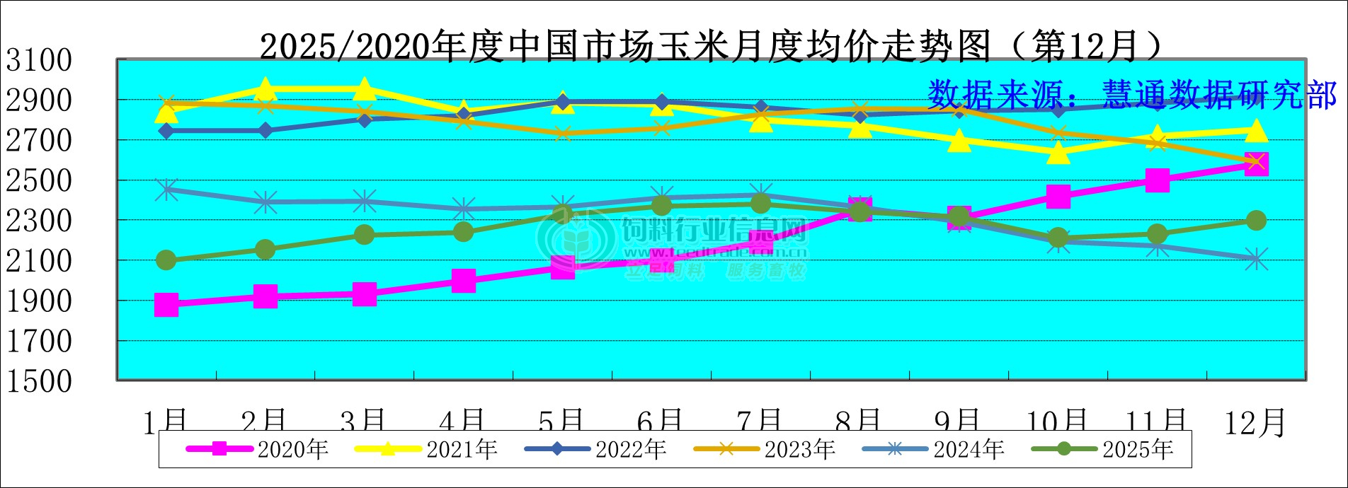 圖表:2025年12月中國玉米月度價格走勢圖(單位:元/噸)