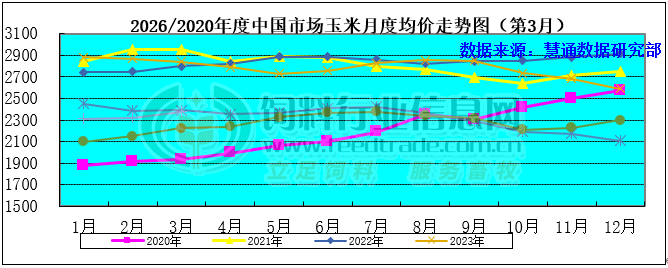 圖表:2026年3月中國玉米月度價格走勢圖(單位:元/噸)