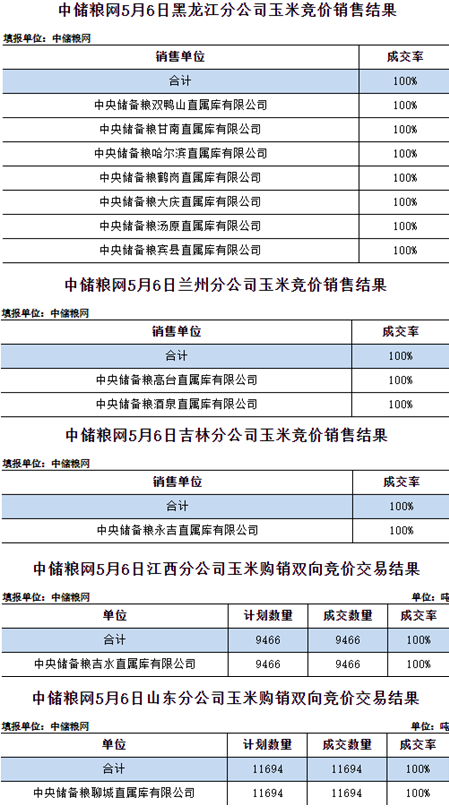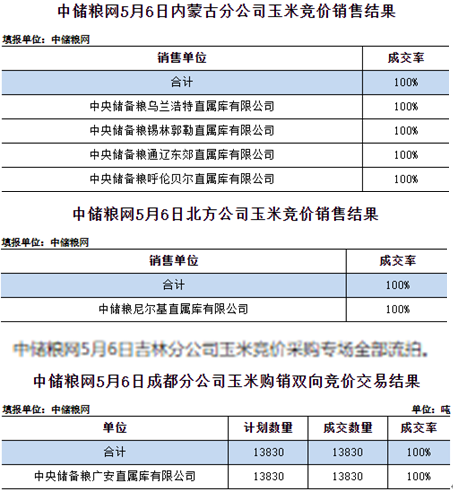 中儲糧網2025年5月6日玉米競價交易結果