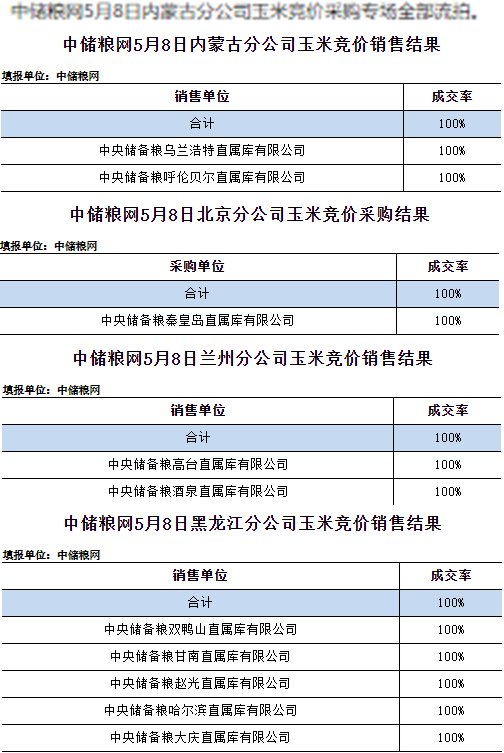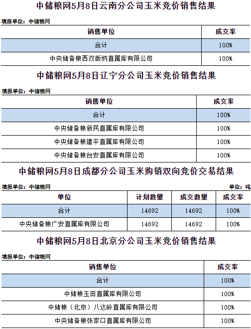 中儲糧網2025年5月8日玉米競價交易結果
