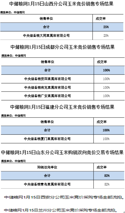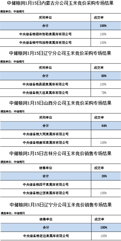 中儲糧網2026年1月15日玉米競價交易結果