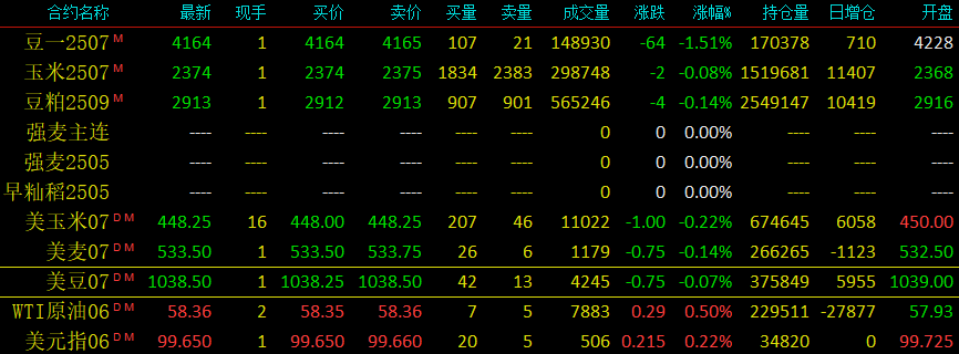 2025年5月8日大連交易所玉米開盤及美盤動態