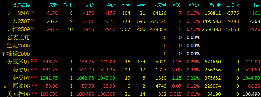 2025年5月9日大連交易所玉米開盤及美盤動態