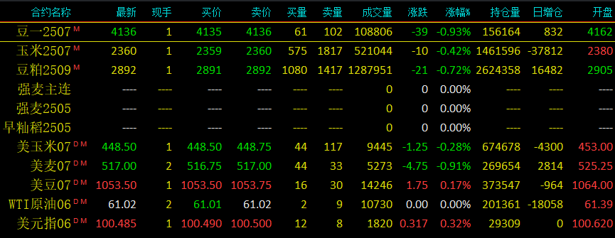 2025年5月12日大連交易所玉米開盤及美盤動態