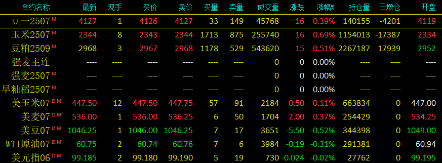 2025年5月30日大連交易所玉米開盤及美盤動態