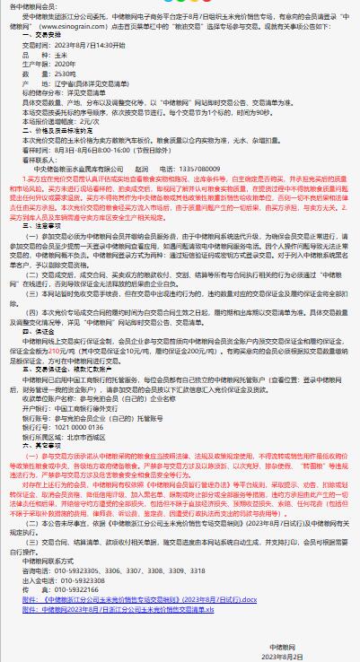 8月7日中儲糧浙江分公司玉米競價銷售專場公告