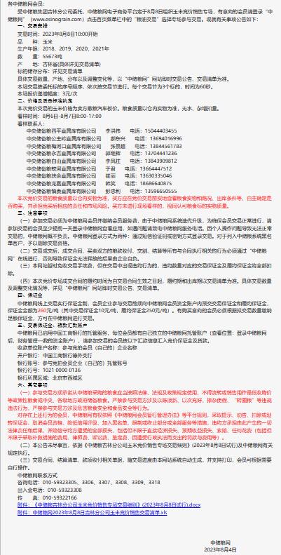 8月8日中儲糧吉林分公司玉米競價銷售專場公告