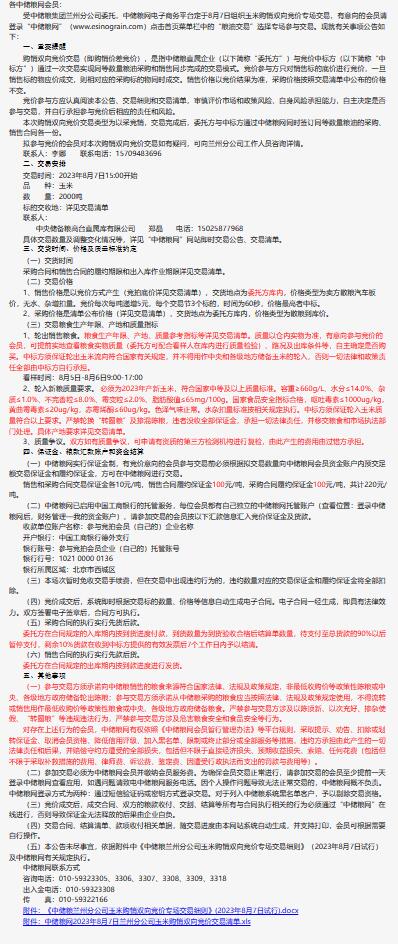8月7日中儲糧蘭州分公司玉米購銷雙向競價交易專場公告