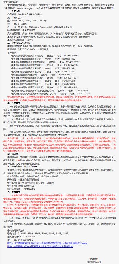 8月8日中儲糧黑龍江公司玉米競價銷售專場公告