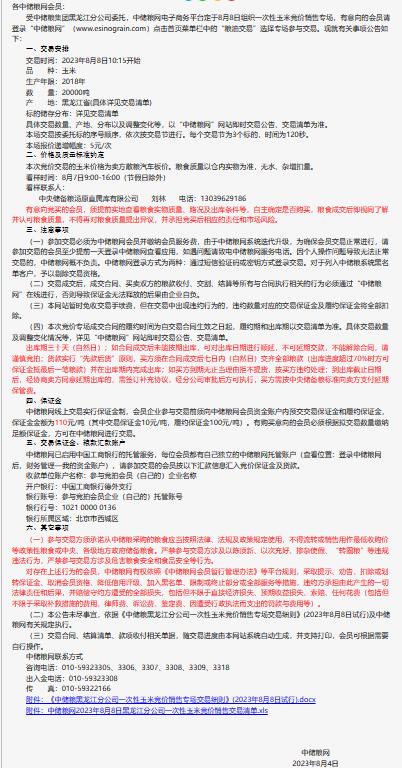8月8日中儲糧黑龍江分公司一次性玉米競價銷售專場公告