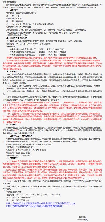 8月7日中儲糧遼寧公司玉米競價銷售專場公告