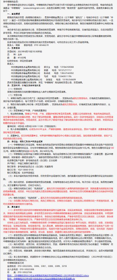 8月10日中儲糧北京分公司玉米購銷雙向競價交易專場公告