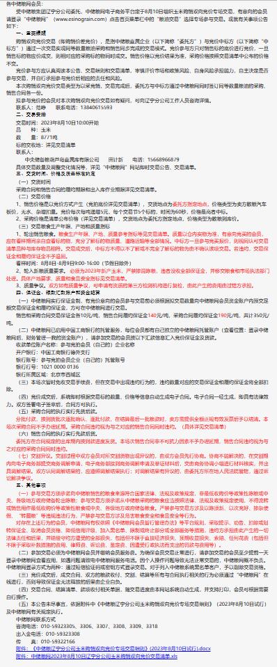 8月10日中儲糧遼寧分公司玉米購銷雙向競價交易專場公告
