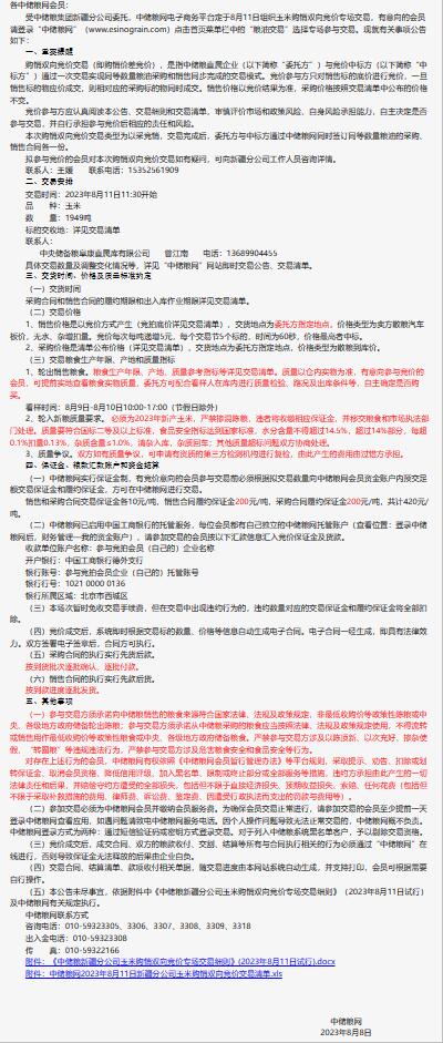 8月11日中儲糧新疆分公司玉米購銷雙向競價交易專場公告