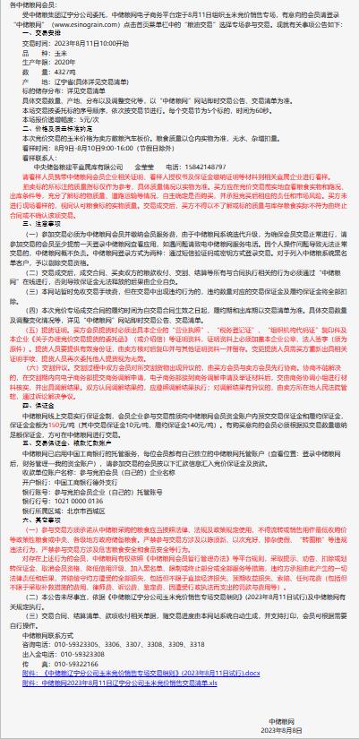 8月11日中儲糧遼寧公司玉米競價銷售專場公告