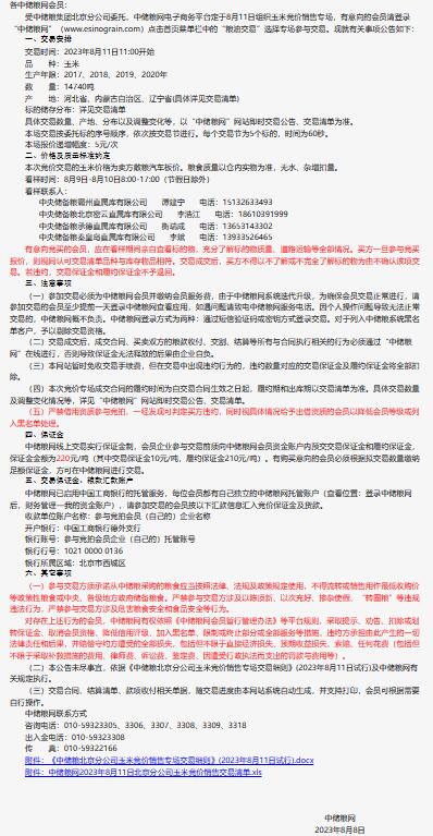 8月11日中儲糧北京公司玉米競價銷售專場公告