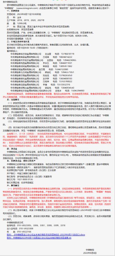 8月11日中儲糧黑龍江公司玉米競價銷售專場公告