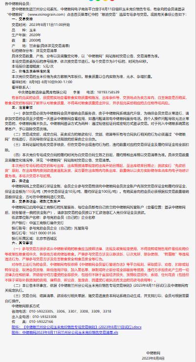 8月11日中儲糧蘭州公司玉米競價銷售專場公告