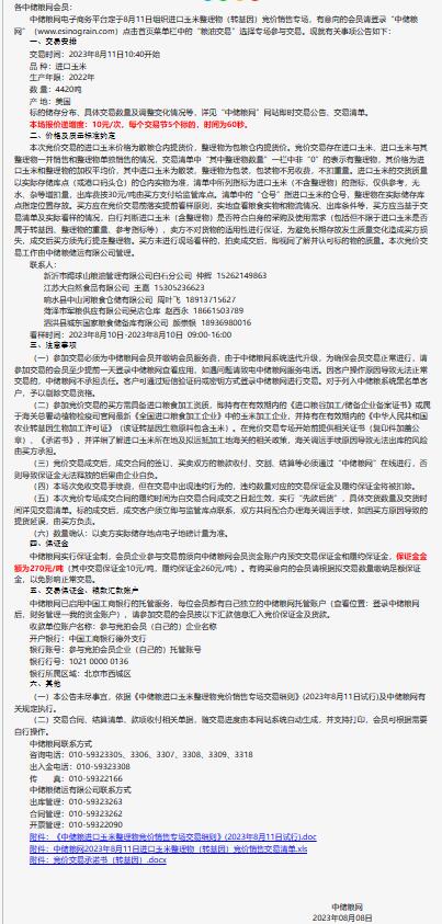 8月11日中儲糧進口玉米及整理物(轉基因)競價銷售專場公告