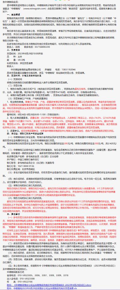 8月29日中儲糧河南分公司玉米購銷雙向競價交易專場公告
