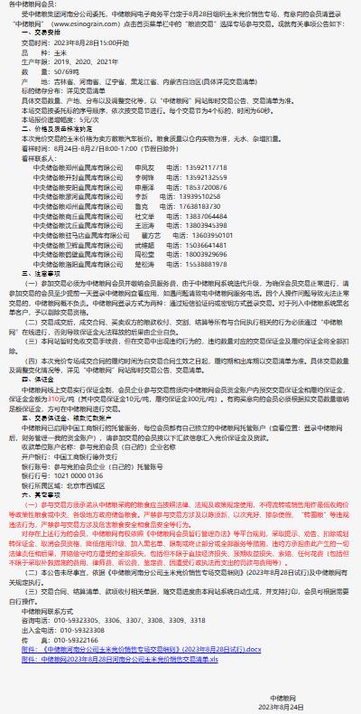 8月28日中儲糧河南分公司玉米競價銷售專場公告