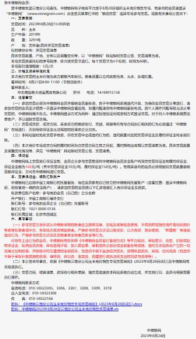 8月28日中儲糧云南分公司玉米競價銷售專場公告