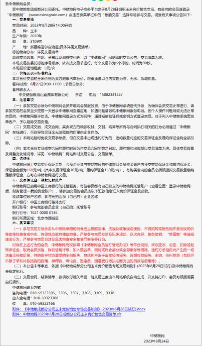 8月28日中儲糧成都分公司玉米競價銷售專場公告