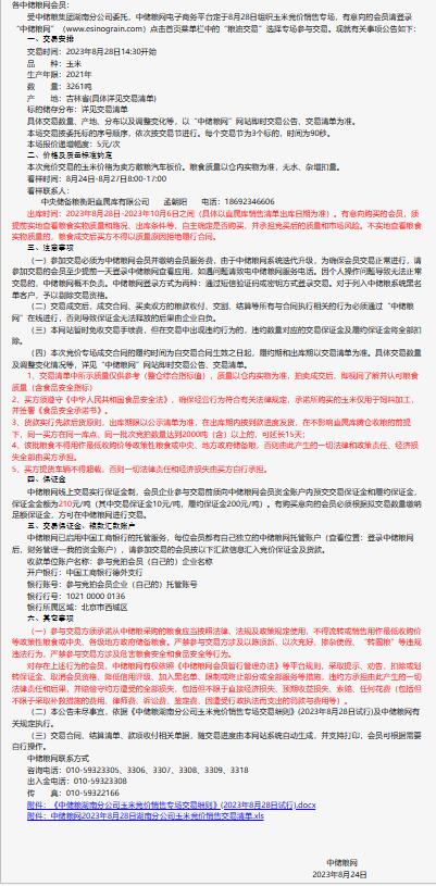 8月28日中儲糧湖南分公司玉米競價銷售專場公告