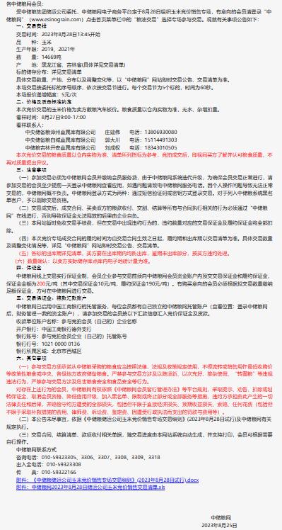 8月28日中儲糧儲運公司玉米競價銷售專場公告