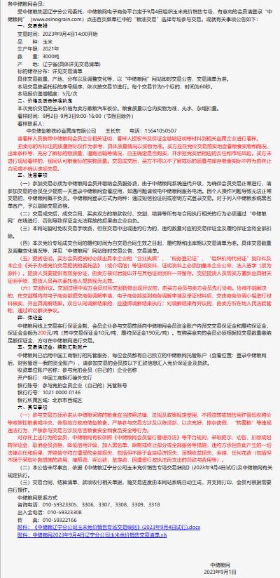 9月4日中儲糧遼寧分公司玉米競價銷售專場公告